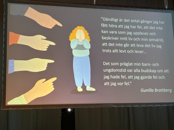 På kulturcentrum har skolan, boendet och daglig verksamhet fått ta del av föreläsningar i läkepedagogik och autism. Mycket intressant att höra Mats och Christian berätta utifrån olika men också lika perspektiv. Att som barn få känna utanförskap och ensamhet på grund av funktionsnedsättning bidrar till dålig självkänsla långt upp i åldrarna. Bilden illustrerar just det.